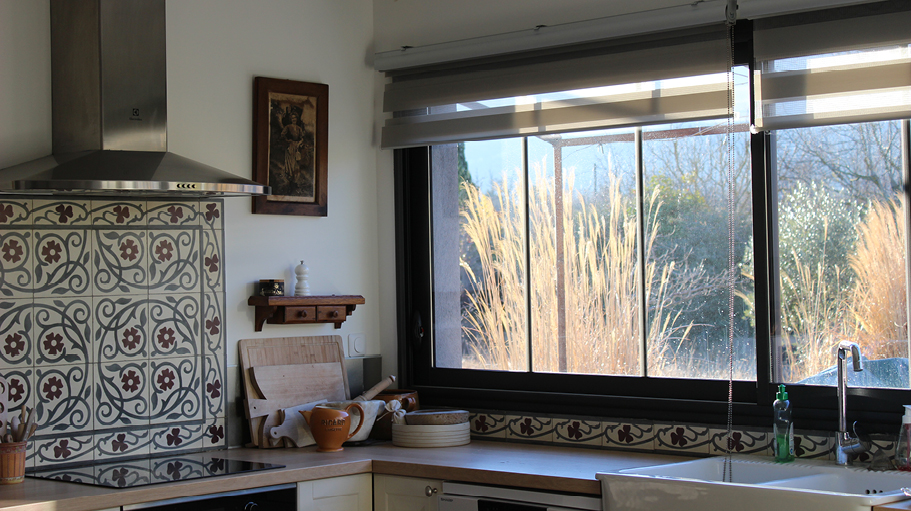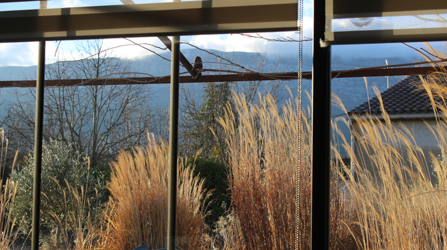 La Forest, brute et boisée, dans des tons de marron allant du glacé au chocolat, la Salammbô, prune et mystérieuse aux douces effluves de cire et d'encens ou la Demoiselle aux très belles couleurs de la libellule, ce bel insecte habitant le verger... citron, mousse, kaki, mordoré, tous les verts sont déclinés offrant lumière et espoir à cet espace ensoleillé...
