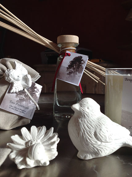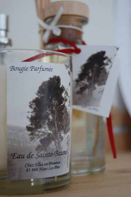 Afin que vous puissiez nous emmener avec vous et prolonger un peu vos vacances, nous avons créer avec Le Bel Aujourd'hui, parfumeurs d'intérieurs, des senteurs 100 % bio, exhalant nos lieux de vie. Ainsi, L'eau de Provence, aux fragrances de verveine fraîchement coupée, L'eau de Nans, aux senteurs de pins et de cade un après midi d'été et L'eau de Sainte-Baume, au parfum capiteux du cèdre et des sous-bois se déclinent en bougie, spray et bouquet... En vente à la maison.