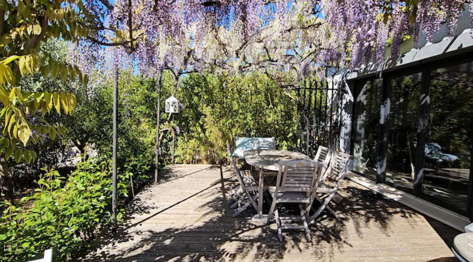 Retrouvez vous sur la terrasse qui prolongera vos soirées d'été. Dans la propriété de nombreux espaces sont à votre disposition ainsi que des coins lecture.
