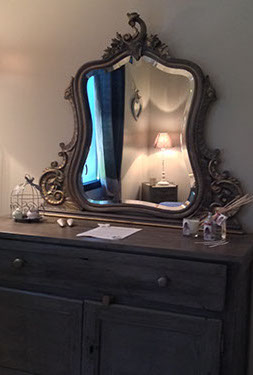 Baroque et mystérieuse, elle promet les bras de Morphée dès le toucher du doux velours recouvrant son lit en 160. Entrez dans un monde onirique où objets chinés et souvenirs de famille se côtoient avec aisance.