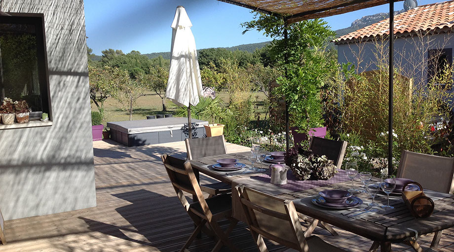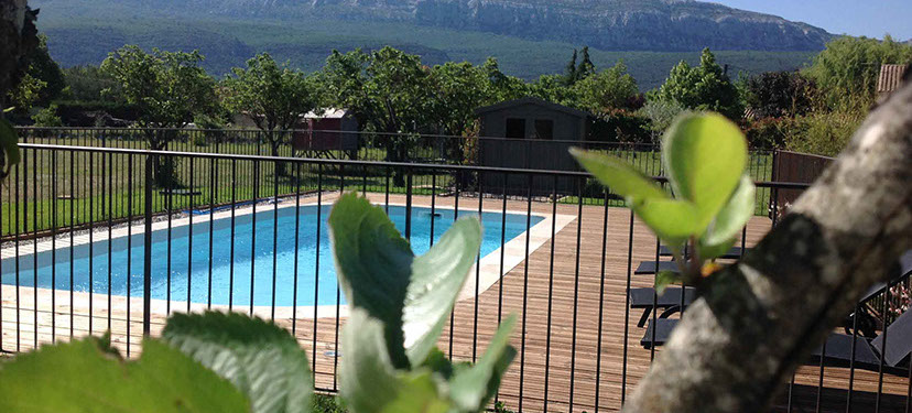 Située plein sud au cœur du verger face à la Sainte Baume la piscine 8mx4m à fond incliné vous rafraîchira en saison et les 50m2 de sa terrasse bois vous permettront de vous relaxer en toute tranquillité.