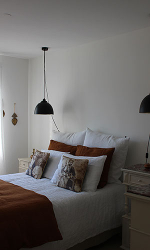 C'est dans une maison-atelier, imaginée et dessinée par nos soins que vous accéderez à une pause hors du temps. Du choix de la peinture de nos murs (Farrow and Bowl) à celui des draps (100% lin naturel), en passant par la douce luminosité d'un sol en travertin, nous avons tout réfléchi pour votre bien être, comme nous l'aurions fait pour chez nous... en rêvant d'instants de repos ou encore de petits-déjeuners dans le verger.