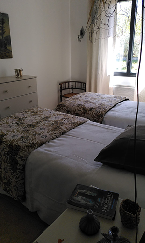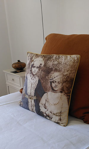 Aux très fines couleurs de la libellule qui habite nos champs et le verger, la Demoiselle, autre nom prêté à cet insecte, vous invite à la couleur et à l'ensoleillement... Mélange de vert mousse, citron, kaki et mordoré, décliné autour de deux lits en 90. Draps en lin, couverture en velours et édredons fleuris... douce nuit...